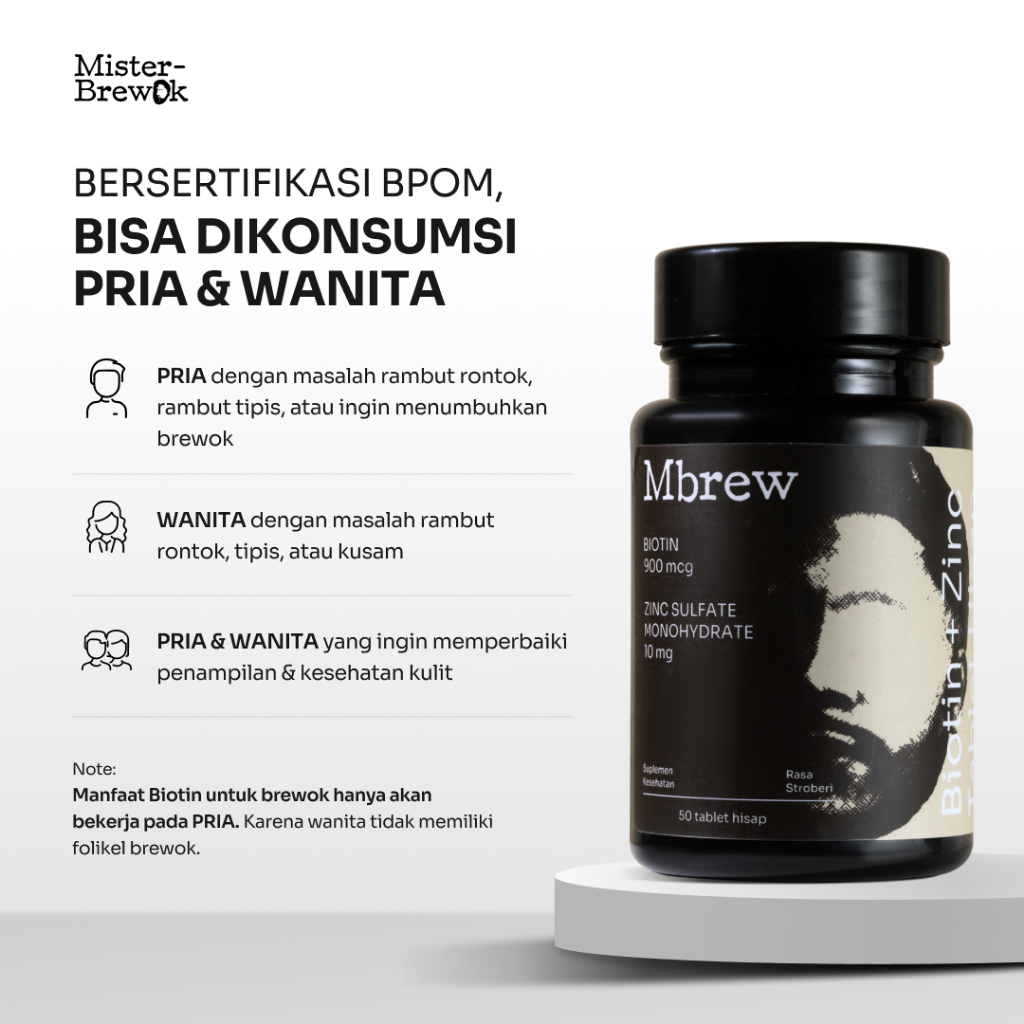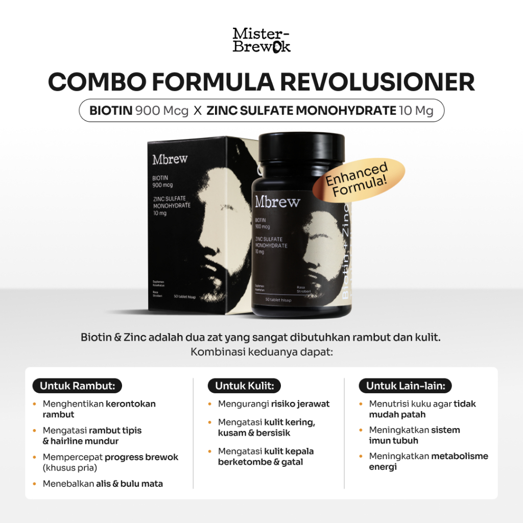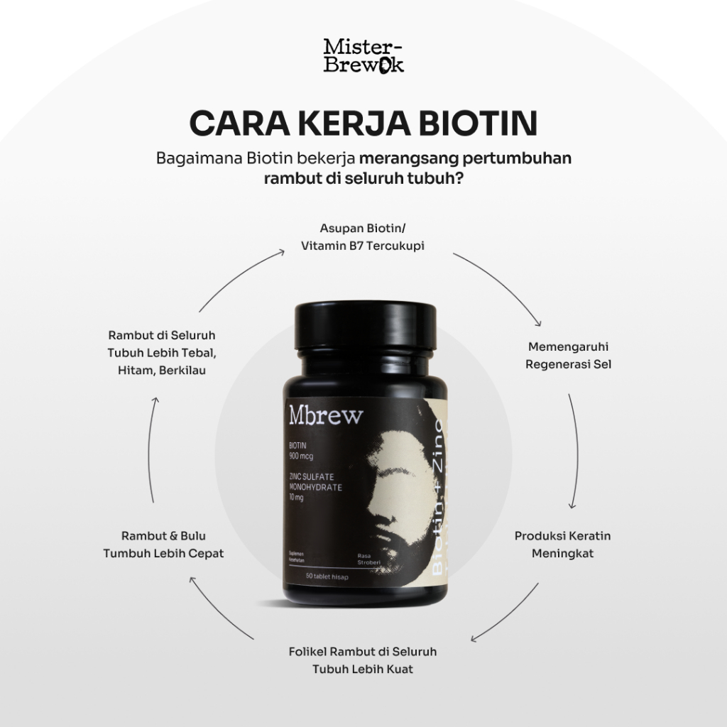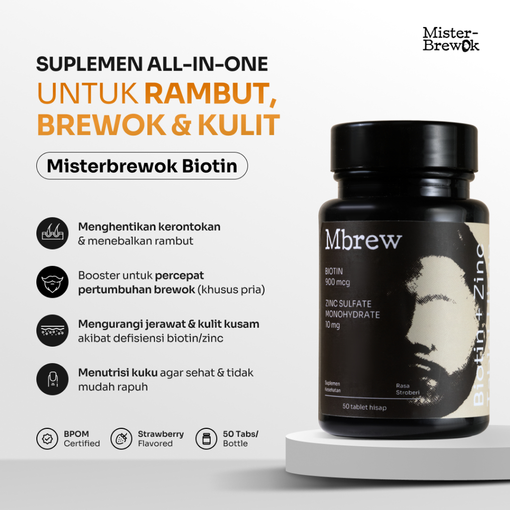 Biotin dan Zinc adalah dua zat yang sangat dibutuhkan rambut dan kulit. Misterbrewok Biotin dapat membantu memenuhi asupan Biotin maupun Zinc yang kurang di tubuh dan menghentikan berbagai masalah yang bisa muncul karena defisiensi keduanya seperti: rambut rontok dan tipis, rambut kering, kulit mudah berjerawat, kulit kusam, dll.